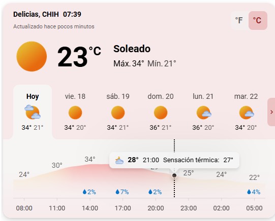 El clima. – para este jueves se esperan temperaturas agradables en la región centro-sur del estado que conforman los municipios de Meoqui, Delicias, Jumiles, Rosales, Camargo, La cruz, Boquilla.